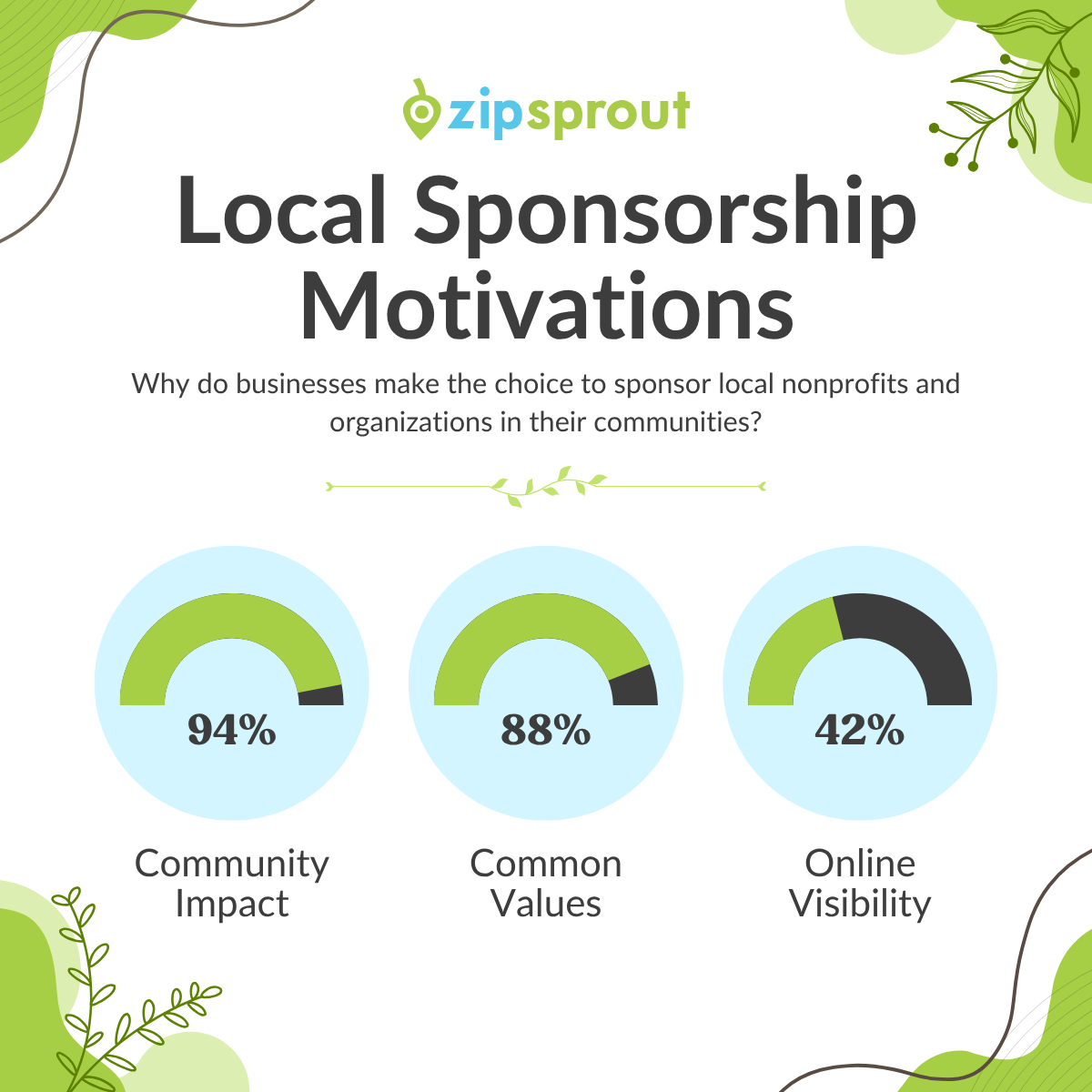 What most businesses don’t realize is that sponsorships help them, too. While 42% said online visibility was a strong motivator, only 15% consider sponsorships to be a major factor in local visibility – even though a simple sponsorship link can strengthen their local search presence.